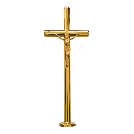 Krzyż stojący złoty z pasyjką, polerowany, rurka fi 40mm