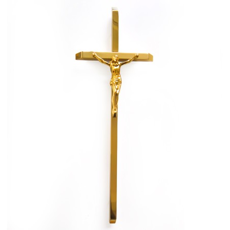 Krzyż złoty ze stali nierdzewnej, płaskownik 20x10 mm, składany na sztorc z pasyjką, wiszący